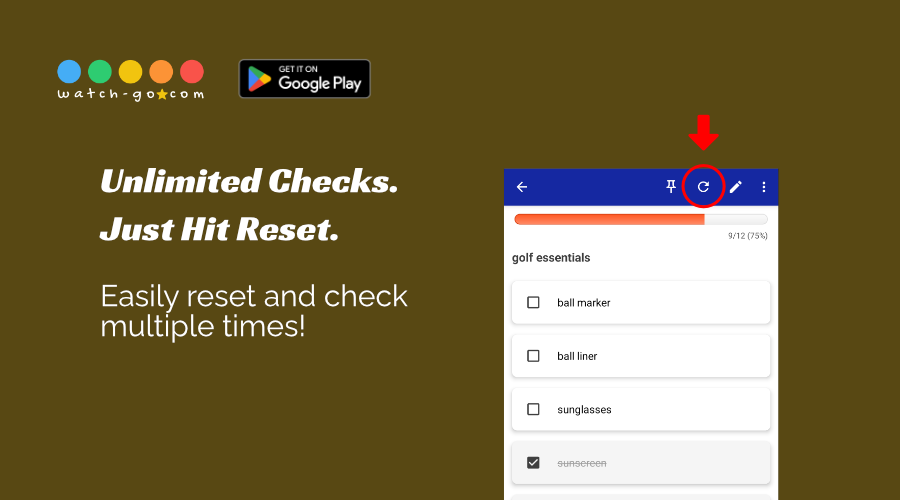 Función de reinicio fácil: Con la función de reinicio, puedes borrar fácilmente todas las casillas de verificación con un solo toque. Perfecto para reutilizar tus listas o empezar de nuevo sin tener que desmarcar manualmente cada elemento.