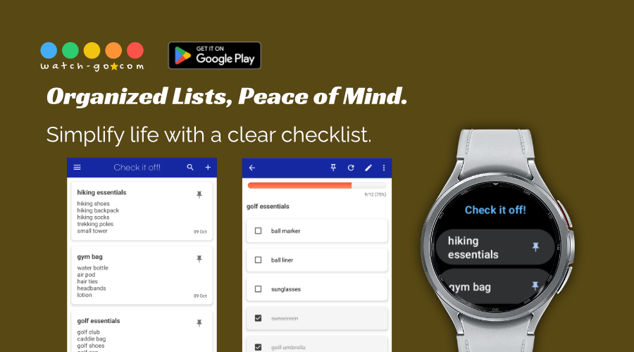 ¡Soporte para Wear OS Watch añadido! La versión 3.0.0 trae noticias emocionantes - ¡Double Check ahora soporta relojes Wear OS! Ahora puedes usar tus listas de verificación directamente en tu smartwatch, haciendo aún más conveniente gestionar tus tareas sobre la marcha. No necesitas sacar tu teléfono - solo echa un vistazo a tu muñeca y marca tus elementos.